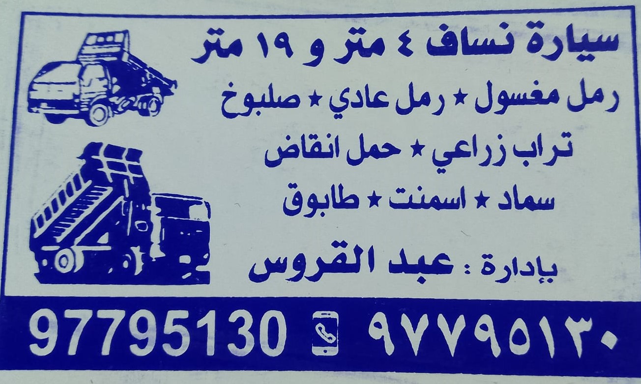 نساف تحميل ونقل انقاض 97795130 صلبوخ تراب زراعي توريد رمل