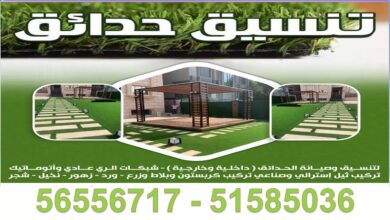 تنسيق حدائق زرعه تيل طبيعي عمل تيل صناعي عمل شبكات ري زرعه جميع انواع الورود قصالاشجار الغير مرغوب فيه…